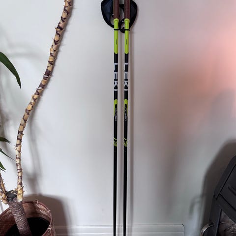 Stavene har håndtak med korkoverflate og tilhørende stropper, samt trinser til bruk på snø. Høykvalitets karbonstav med Trigger Shark stroppesystem. Fargekombinasjon gul, hvit og svart. Egner seg til klassisk eller skøyting på ski, avhengig av lengde og tilpasning til bruker. Stavene har veldig godt grep i løypa og kan anbefales. Jeg har brukt de to gang, da det ble feil lengde for meg.