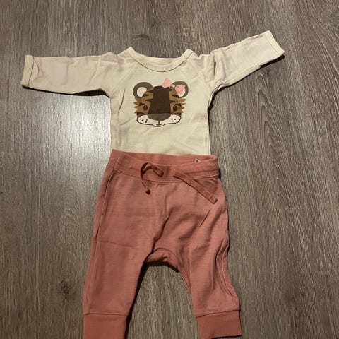Babyklær i bambus/ull i str 62. Klærne er lite brukt, men den ene pysjen har fått et merke.