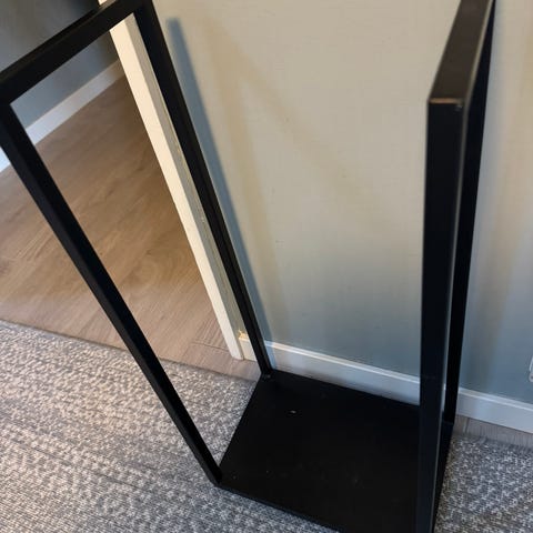 Vedstativ fra Lastein Design (Danmark). Bunnen av vedstativet er 55cm langt, mens toppen inkl knottene er ca 62cm. Dybde 28cm. Høyde 52cm. Sort metall og tre.