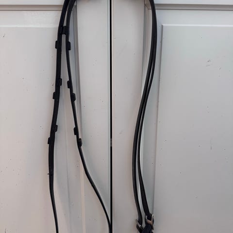 Leietau med lenke / kjetting selges. Det har sett mye bruk, men tåler enda det samme som når det var nytt. Har en sterk stållegering, mens hesteutstyr ofte bruker billigere stål enn dette.