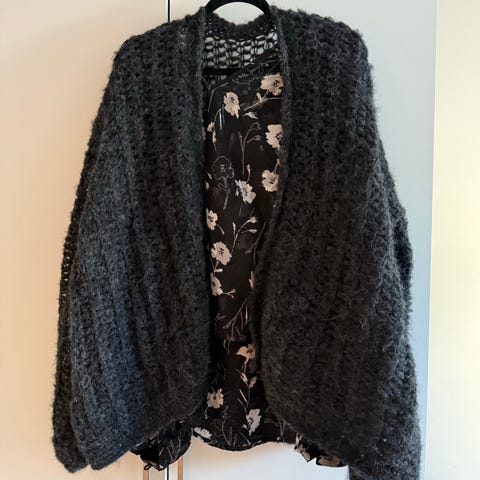 Hjemme strikket cardigan strikket i kid silk str. Small