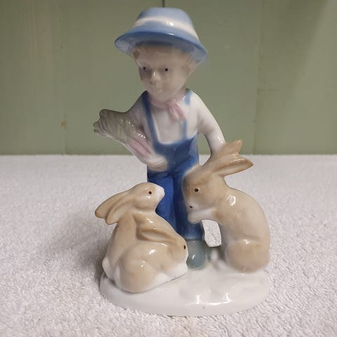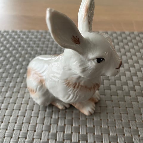 Hvit porselensfigur formet som en sittende kanin. Figuren har glanset overflate og enkle detaljer i ansikt og kropp. Passer som pyntegjenstand i hylle, på bord eller i vitrineskap. Egnet til helårsbruk eller som del av påskepynt.H7,5 nummeret