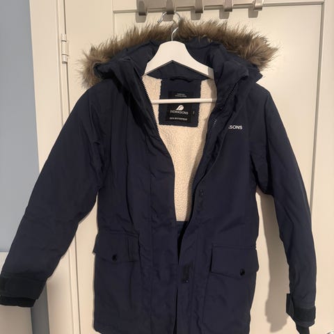 Nydelig lang jakke til bruk vinter og høst til tur og lek.