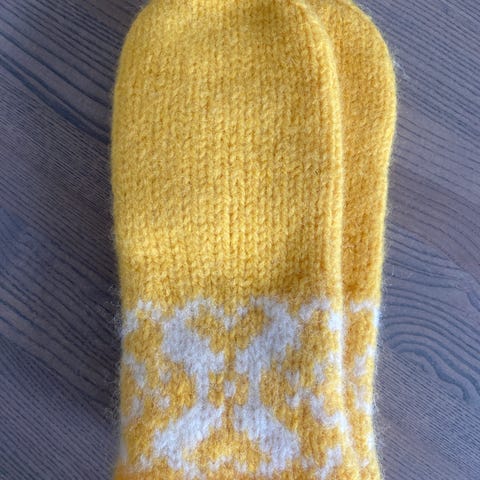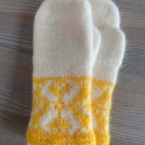 Gode og varme tova votter strikket i alafosslopi (islandsk ullgarn). Str M.
