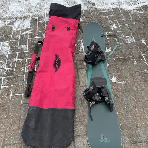 Burton snowboard med bindinger. Brettet har ett brudd, men funker som normalt i bruk. Gode bindinger, så pris er mest knyttet til Verdien av disse. Brettet har grafikk i svart, blått og hvitt, med røde bindinger montert. Egner seg til vanlig snowboardkjøring. Det ser ut til å være en skade i tuppen av brettet (se bilde for detalj). Passer for brukere som ønsker et snowboard med inkluderte bindinger. Størrelse og mål er ikke oppgitt og bør eventuelt måles ved behov.