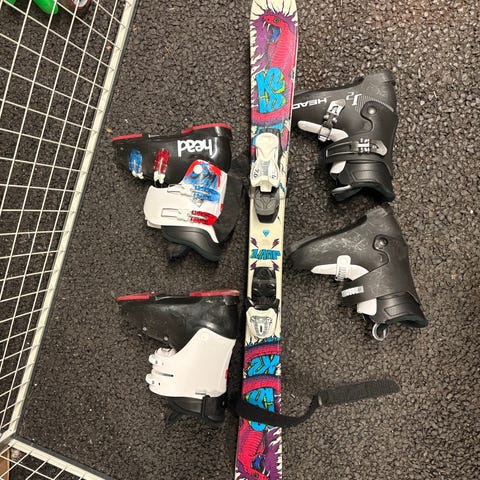 Head Supershape alpinski med integrerte bindinger. Skiene har overflate i grønn og svart med tydelig Head-logo. Undersiden viser tradisjonell alpinski-konstruksjon med midtbredde tilpasset preparerte løyper. Leveres med monterte alpinbindinger som er justerbare i lengde. Egnet til bruk i alpinbakke for carving og vanlig skikjøring på preparerte forhold.