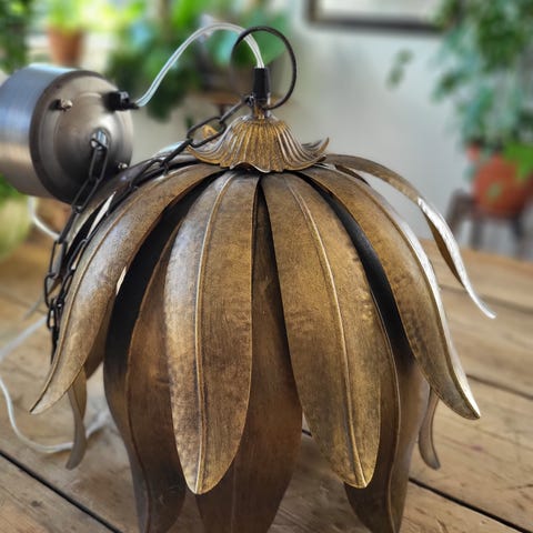 Contessa hengelampe, kjent for sitt antikke design i bronse med dekorative bladdetaljer.