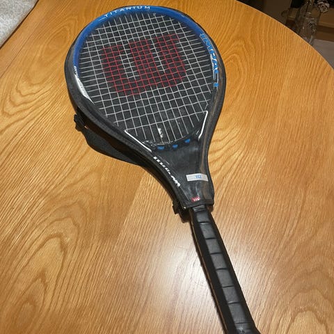 Wilson Blade 98 tennisracket. Racket med 98 tommers rackethode. Håndtaket er surret med lyst grep. Egnet for spillere som ønsker en kontrollorientert racket i standard størrelse til tennis på bane, både trening og kamp.