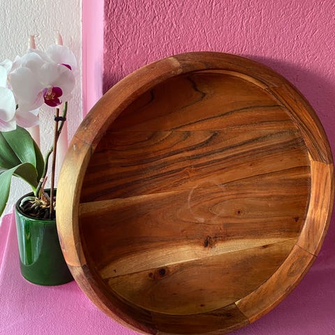 Dekorativ trefat med utskjæringer og kniv