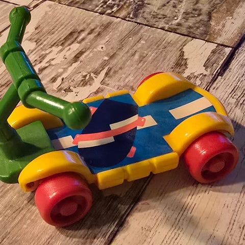 Merking: Figuren har inngraverte detaljer på magen som inkluderer "SEGA/SUNSAT", "Playmates", og et unikt produksjonsnummer (som 1B9268 på bildet).