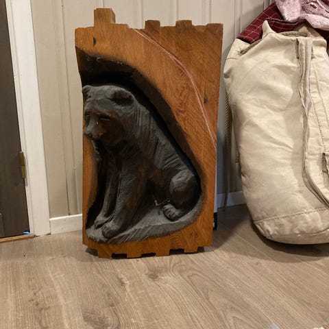 Den største (ca. 20 cm) er utført i brent teknikk som fremhever årringene og gir en tydelig, grafisk struktur- Utført i svibrent teknikk som fremhever årringene.