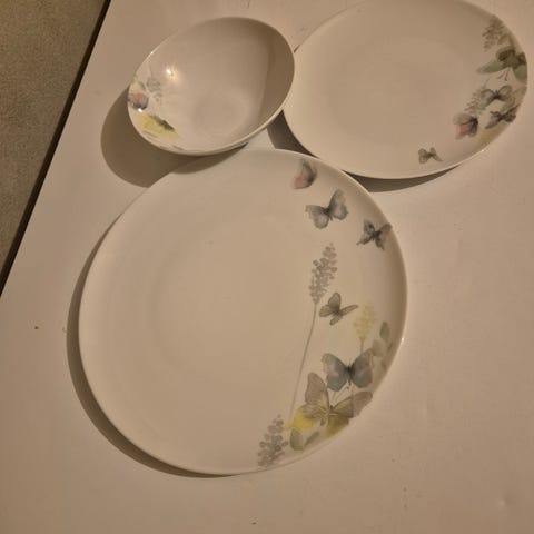 2 stk heilt mye middagstallerkener og 2 stk asjetter frå Firkløveren