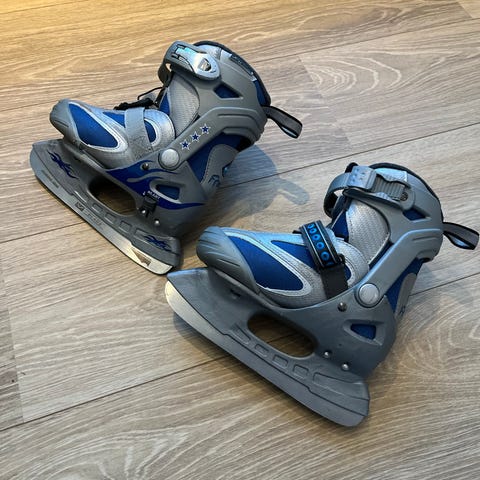 Justerbare skøyter. Godt brukte, men fullt brukbare. Kan justeres fra størrelse 28 trinnvis opp til 31.
