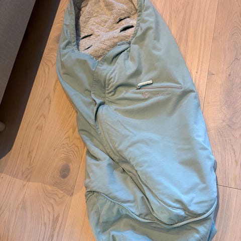 Pent brukt vognpose med forlenger. Lengde 100/110cm. Svak misfarging i bunnen av forlengerdelen. Brukt til ett barn. Farge lys grønn.