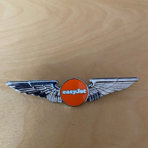 Original Thomas Cook pilotvinge metallmerke i blå og gullfarge. Som ny, aldri brukt.