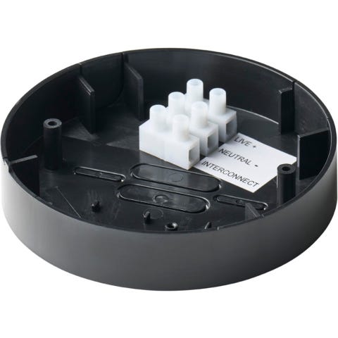 Brakett for fastmontering av WaterSensor+ på vegg eller gulv. Braketten beskytter sensoren fra utilsiktede slag og støt og muliggjør tilkobling av av eksternt 5V strømadapter for WaterSensor+, samt sensortape med 3.5 mm Jack plugg for utvidet dekningsområde (3 m lang sensortape medfølger i braketten.
