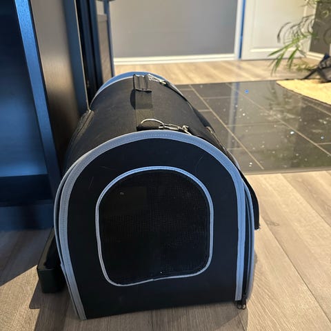 - Den har både bærehåndtak og justerbar skulderrem. Egnet for transport av mindre kjæledyr som katt eller liten hund.