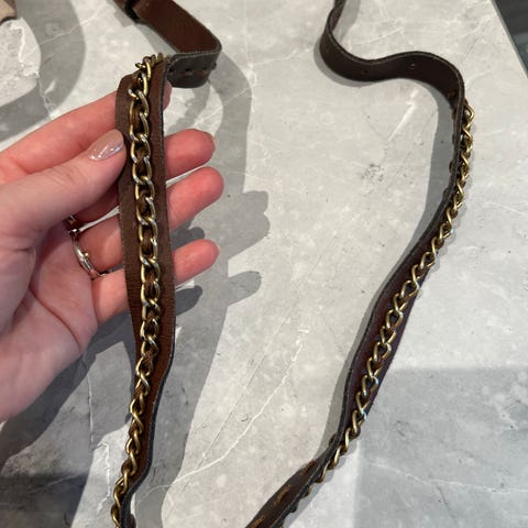 Selger et pent belte med krokodillemerke. Beltet er 80 cm langt og passer fint til både hverdagsbruk og finere anledninger.
