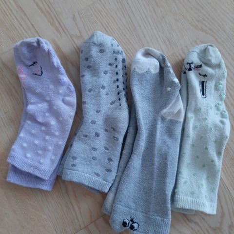 Selges billig da det er litt små nuppete og det er 2 synlige flekker på de stripete sokkene🙃😊