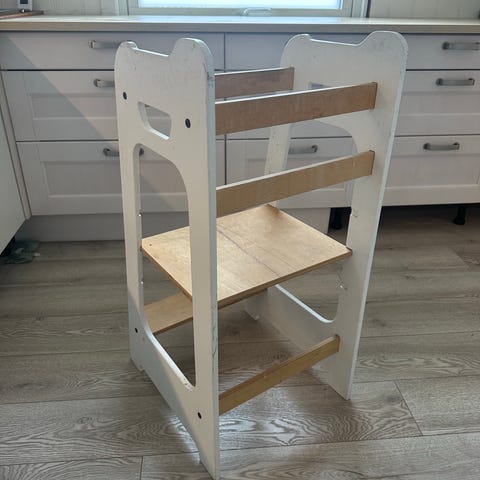 Selger en kjøkkenhjelper som er lite brukt. Den har noen få flekker og skrapemerker, ettersom den har stått på et kjøkken.