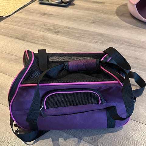PetClup transportbag/bur til katt eller liten hund i svart tekstilmateriale kjøpt på rusta.