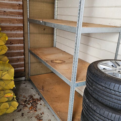 Gies bort mot henting. Brukt til å stable ved på under tak.