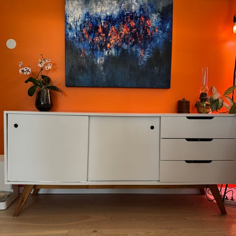 Selger en veldig pent brukt skjenk på grunn av flytting. To gode skap med hyller og tre skuffer.