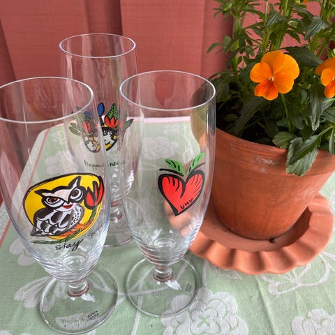 4 stk Kosta Boda "Tulipa" glassasjett, designet av Ulrica Hydman-Vallien. Diameter 19 cm. Asjettene er i 4 forskjellige farver.