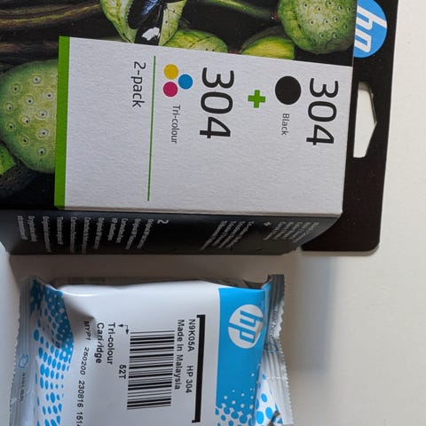 HP 304 trefarger har jeg hatt en stund hjemme og den er uåpnet.