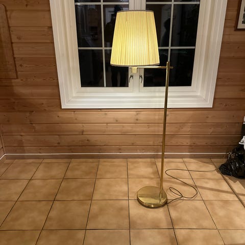 Pent lampe i messing farge. 179 cm høy.