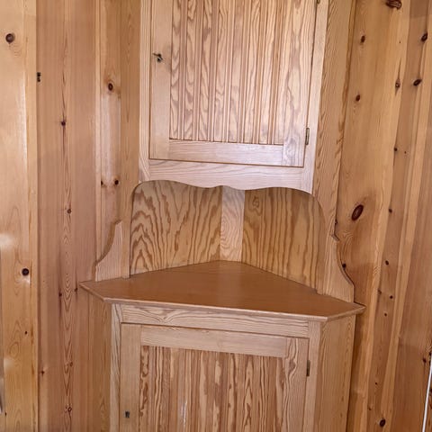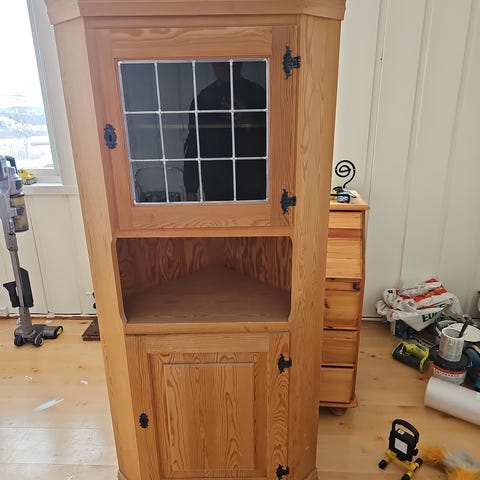 Gammelt, pent hjørneskap gis bort