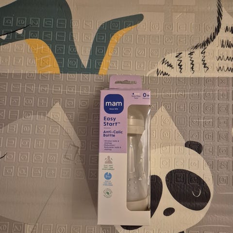 Settet inneholder to tåteflasker i plast med smokk og lokk. Flaskene er ikke brukt, har kun åpnet og sett at jeg kjøpte i plast og ikke i glass.