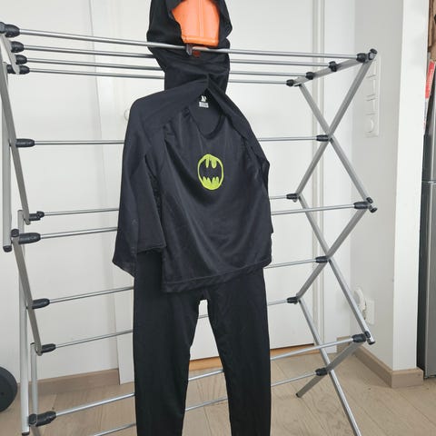 Drakten består av jakke og bukse, svart belte og hodedekorasjon hachimqki.