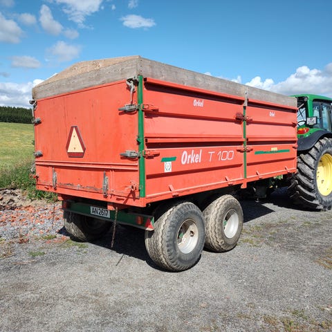 Godt vedlikeholdt Orkel traktorhenger med høye karmer.