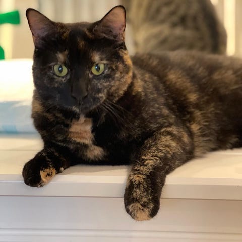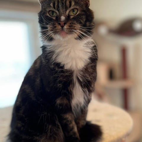 Han er en rolig og snill innekatt, men liker også å være ute om sommeren.