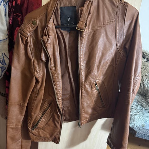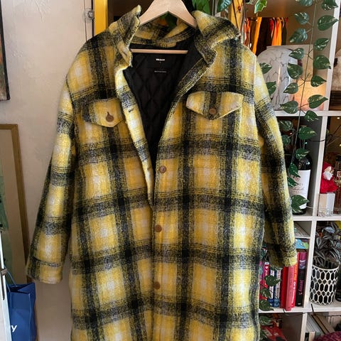 Sisters Point CALY-JA jakke for dame i størrelse M. Jakken er flerfarget med stripet/rutete mønster i blant annet grønt, gult og hvitt. Ytterstoffet består av 90 % polyester og 10 % ull, med fôr i 100 % polyester. Modellen har krage, knappelukking foran og brystlommer med klaff og knapp. Passer som en lett jakke eller overskjorte i overgangssesonger. Er en oversized jakke, derfor noe stor i str.