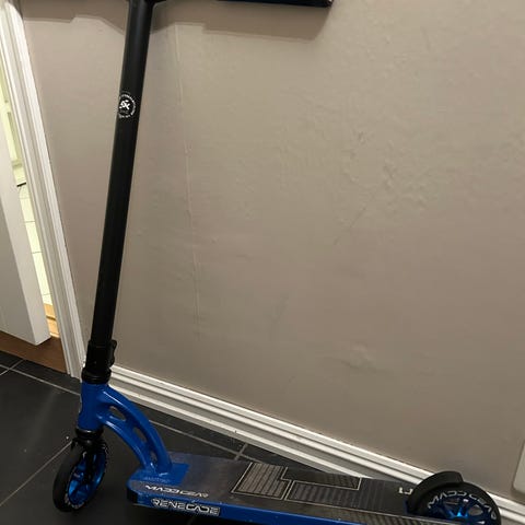 En tøff sparkesykkel fra Pinepeak. Sparkesykkelen er utstyrt med store lufthjul som gjør at du kan ta deg fram raskere.