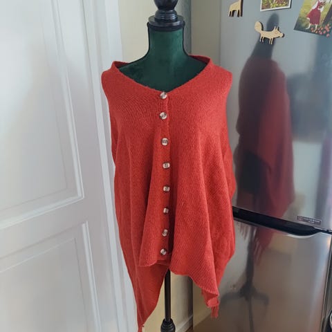 Ullvest i nydelig rød/burgunder farge. Kan knytes. Passer L og XL. Svært lite brukt.
