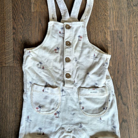 Newbie selebukse (eller romper) til baby, preget av et sommerlig mønster med små anker.