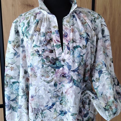 Bunadskjorte i M/L størrelse, 100% bomull. Vakker skreddersydd skjorte med puffermer og kinakrage til bunad, drakt eller vanlig festantrekk.
