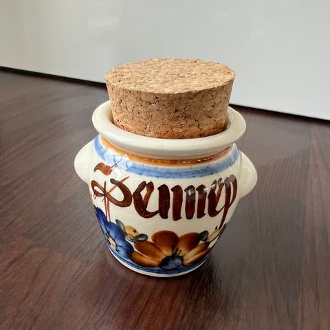 Nostalgisk retro krukke med lokk i kork. Motiv jente og gutt. Stemplet under Made in West Germany Bavaria.