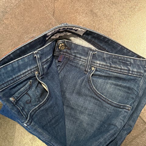 Selger en svært pen Jacob Cohën Nick i størrelse 31 fra Premium Denim Edition. Dette er en ekstra gjennomført modell i mørk rådenim uten stretch, med fast og strukturert stoff som former seg naturlig over tid. For deg som foretrekker klassisk denimfølelse fremfor elastiske kvaliteter er dette et langt mer eksklusivt alternativ enn standard stretchvarianter.
