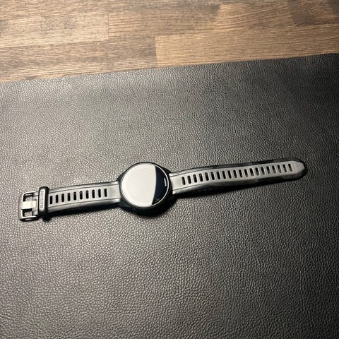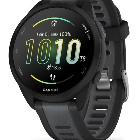 Garmin Forerunner 165 Music smartklokke i svart og grå. Kjøpt januar 2026 her: https://www.vpg.no/Garmin-Forerunner-165-Music/394573/