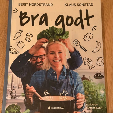 Gyldendal Bra godt kokebok. Boken inneholder oppskrifter på ulike retter, blant annet gryteretter, fiskeretter og desserter, presentert med fargebilder. Innholdet fokuserer på hverdagsmat og enkle retter, med forklarende tekster og ingredienslister til hver oppskrift. Trykt på norsk bokmål, innbundet med illustrert omslag.