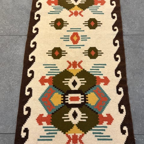 Håndheve teppe i ull og klare farger, med mange bruksområder.