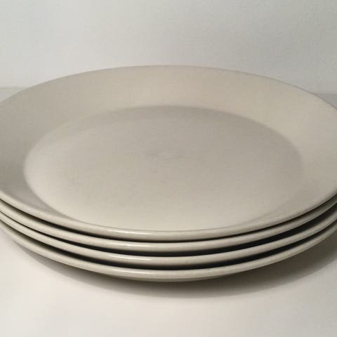 Disse tallerkenene stables svært lavt og tar liten plass i kjøkkenskapet (se bilder).
