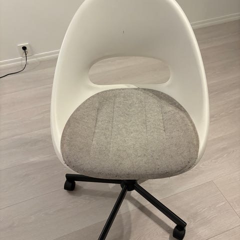 IKEA Malskär kontorstol i gul plast. Stolen har sete og rygg i formstøpt plast med utsparing i ryggen. Understell med hjul gjør den enkel å flytte rundt. Egnet som kontorstol eller arbeidsstol på kontor, barnerom eller arbeidsplass hjemme.