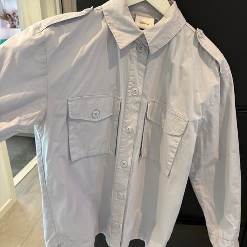 Ny skjorte fra Gestuz i nøytral gråfarge. Laget i solid stoff av høy kvalitet med gode sømmer og fin passform. Lappen er klippet av, men skjorten er aldri brukt og fremstår som ny. Nypris 1599 kr.