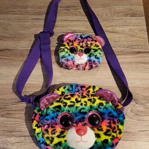 Bamseveske med regulerbar reim og glidelås for lukking. (20x17 cm)