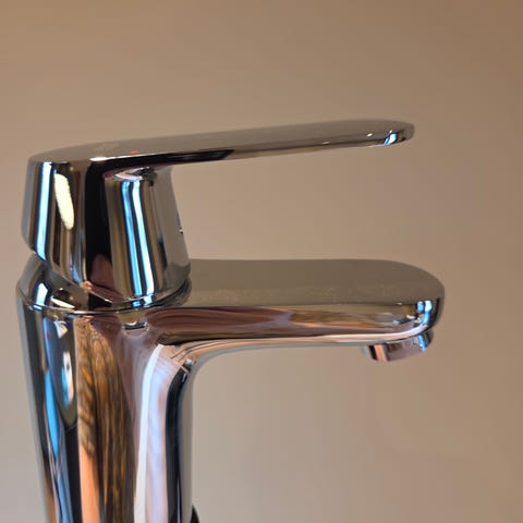 Svedbergs servantbatteri i krom. Ettgreps blandebatteri for servant, med moderne, rettlinjet design. Leveres med tilkoblingsslanger som vist på bildene. Passer til standard baderomsservant med ett hull for armatur. Kun